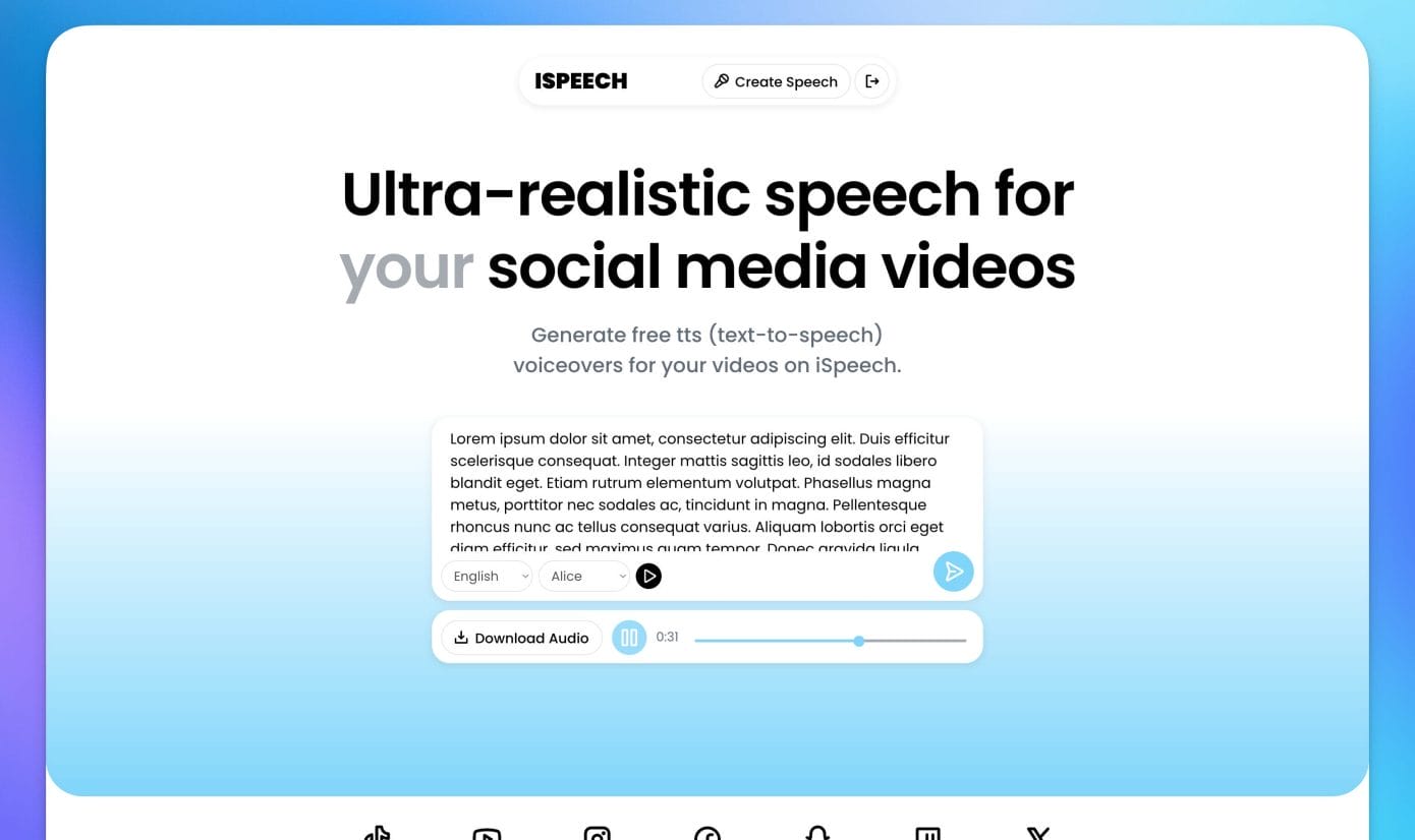 iSpeech enables users to convert text into natural-sounding speech with minimal setup.